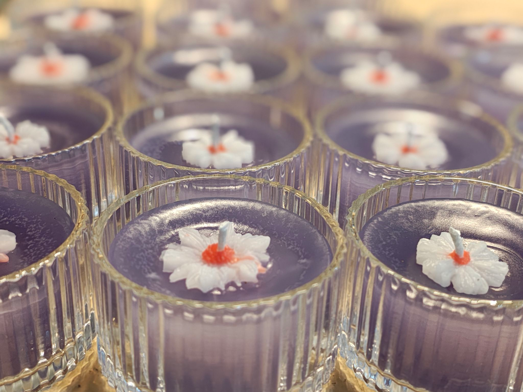 This candle is made with finest wax and other ingredients. It has la ender and vanilla scent in it.